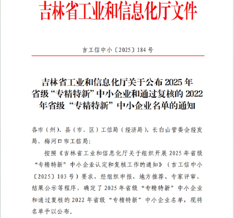 碩果盈枝,捷報頻傳!2025年11月5日,吉林省工信廳公布復核名單(吉工信中小〔2025〕184號),亞泰集團通化水泥股份有限公司(簡稱“通化公司”)成功通過省級“專精特新”中小企業(yè)復核,憑借在“專精特新”領域的深耕成效再度獲權(quán)威認定。
